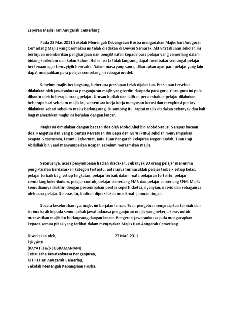 Laporan Majlis Hari Anugerah Cemerlang Pdf